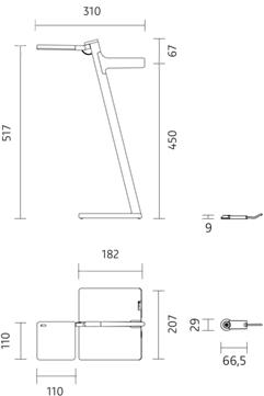 | Material | Diffusorfläche: Polycarbonat Leuchtenkopf, -rohr & -fuß: Aluminium, farbig lackiert Kopfgelenk: Zinkdruckguss |