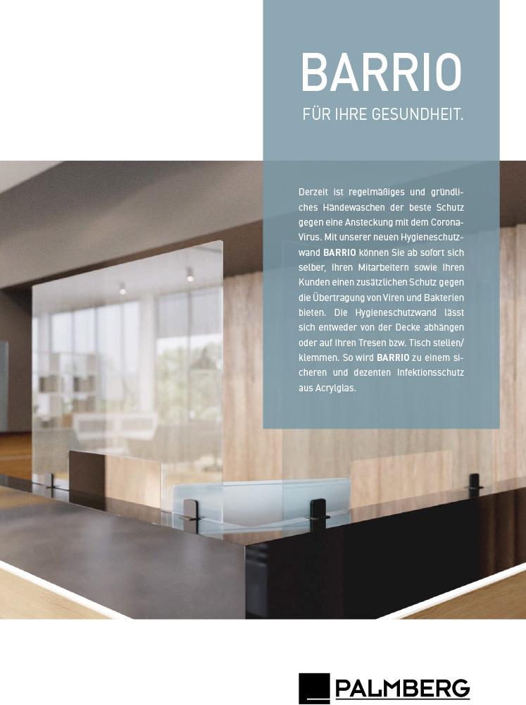 Neben den empfohlenen Hygiene- und Vorsichtsmaßnahmen wie gründliches, regelmäßiges Händewaschen und Social Distancing bietet die Hygieneschutzwand Barrio aus Acrylglas für MitarbeiterInnen mit Kundenkontakt einen zusätzlichen Virenschutz. Die Palmberg Trennwand kann wahlweise an der Decke angebracht oder als Aufsatztrennwand genutzt werden - dank des simplen Konstruktionsprinzips ist zur Montage kein Fachpersonal notwendig. Jede Palmberg Hygieneschutzwand wird auftragsbezogen angefertigt, für ein individuelles Angebot kontaktieren Sie bitte unsere PlanungsexpertInnen in den smow Stores.
