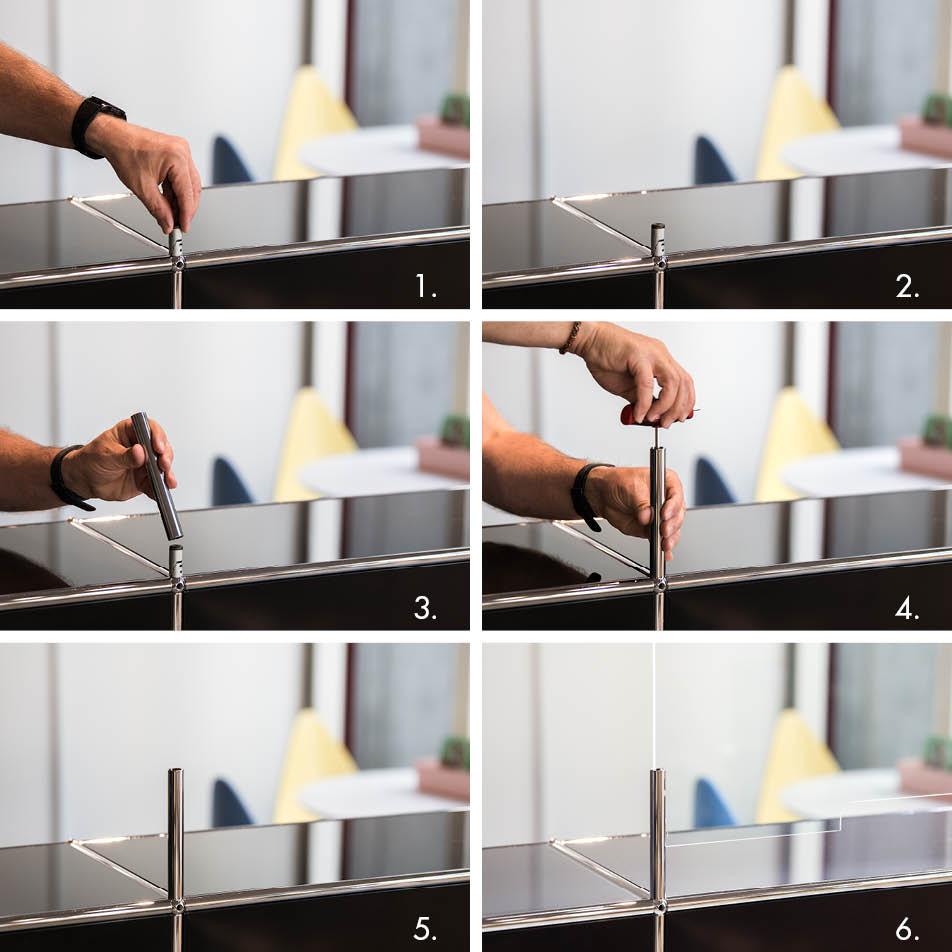 Neben zahlreichen individuell konfigurierbaren USM Büromöbeln finden Sie bei smow ab sofort USM Haller Counter mit Security-Screens aus Plexiglas. Die USM Tresen mit Trennwand bieten in der aktuellen Zeit einen zusätzlichen Schutz ("Spuckschutz") für Ihre MitarbeiterInnen, GeschäftspartnerInnen und KundInnen. Zur Übergabe von Dokumenten dient eine schmale Öffnung am unteren Rand der Plexiglasscheibe. Selbstverständlich ist der USM Haller Security Screen auch separat zur Ergänzung bereits bestehender USM Möbel erhältlich. Bei Fragen oder Beratungswünschen stehen Ihnen unsere geschulten USM-ExpertInnen gern unterstützend zur Seite. Ob USM Empfangstresen in Ihrer Arztpraxis oder Highboard im Büro: Teilen Sie uns Ihren Wunsch persönlich vor Ort, telefonisch, per Mail oder per Videochat mit. Unsere deutschlandweiten smow Stores sind für Sie da – kurzfristig und unkompliziert.