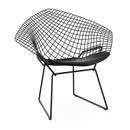 Der Bildhauer und Designer Harry Bertoia entwickelte während der 1950 Jahre verschiedene Möbeldesigns für den amerikanischen Hersteller Knoll International. Der erfolgreichste dieser Entwürfe sollte der Diamond Chair werden - und zwar so erfolgreich, dass sich Bertoia aufgrund der Lizenzeinnahmen fortan ausschließlich auf seine bildhauerischen Arbeiten konzentrieren konnte. Den minimalistischen Knoll Diamond Chair entwickelte er aus einem filigranen Metallgewebe. Schon zuvor hatte sich Bertoia auch in seiner bildhauerischen Arbeit auf die Verarbeitung von Metall spezialisiert; seine Möbelentwürfe beschrieb Bertoia als "Studien in Raum, Form und Metall". Der transparente Diamond Chair entwickelt vor allem in Verbindung mit dem bunten Sitzkissen eine geradezu skulpturale Präsenz und setzt so in jedem Raum klare Akzente. Heute bietet Knoll den Bertoia Knoll Diamond Chair mit einem Gestell aus Stahldraht und mit verschweißtem Metallkorb in unterschiedlichen Ausführungen sowie mit Sitzkissen in drei unterschiedlichen Farben an.