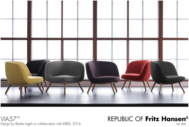 Der Fritz Hansen Sessel Via57 wurde von Bjarke Ingels und Kibisi für das Via 57 West Building in New York City designt und vertritt mit seiner reduzierten Formgebung den typisch skandinavischen Stil. Auffällig und eher unkonventionell ist die Anordnung der Beine aus Eichenholz, die dem Via Lounge Sessel einen stabilen Stand verleihen.