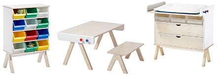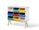 Mit der Famille Garage Serie, zu der auch das Produkt Famille Garage Wickeltisch/Kommode (groß) gehört, beweist der Möbelhersteller Richard Lampert einmal mehr, dass die Designs, die in diesem Rahmen produziert werden, vor allem mit ihrer Modularität und ihren vielseitigen Verwendungsmöglichkeiten punkten. Schon beim Eiermann Tisch lassen sich Gestell und Platte separat transportieren und austauschen. Auch beim Wickeltisch, beziehungsweise bei der Kommode der Famille Garage Serie, die von Designer Alexander Seifried stammt, ist ein Verwendungszweck nicht ausreichend: Die Platte des Wickeltisches lässt sich nach dem Windelalter einfach demontieren, sodass man den Unterbau als geräumige Kommode weiterverwenden kann. Die bunten Kunststoffboxen sowie ein Gestell, mit dem die Wickeltischplatte zum Kindertisch umfunktioniert werden kann, sind separat erhältlich.
