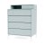 | Funktion & Eigenschaften | Kommode mit 4 großen Schubladen Aufsatz mit einer kleinen Schublade und einem offenen Fach Der kleine Aufsatz wird lediglich auf die Kommode gestellt. Kleine Kunststoffplättchen verhindern das Verrutschen. Belastbar bis 50 kg |