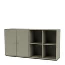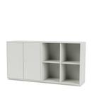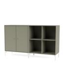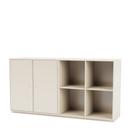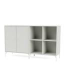 | Funktion & Eigenschaften | Sideboard bestehend aus 2 Montana System Modulen, welche nicht miteinander verbunden sind. Die 2 Module sind in je 4 gleich große Fächer aufgeteilt, 1 Modul wird mit Flügeltüren geliefert, 1 Modul ist offen. Belastbar je Modul bis 50 kg auf Beinen und bis 60 kg auf Sockel |