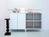 | Abmessungen | Höhe mit Sockel: 72,6 cm Höhe mit Beinen: 82,2 cm Breite gesamt: 139,2 cm Breite je Element: 69,6 cm Tiefe: 38 cm |