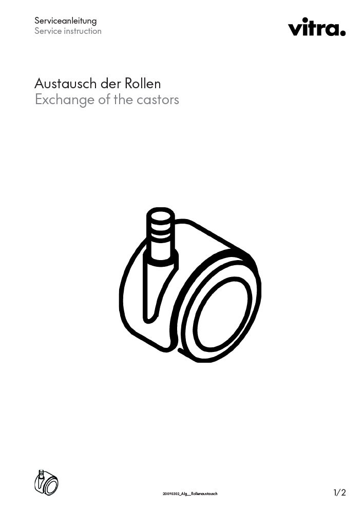 | Ausführungen | Harte Rolle für Teppichböden & weiche Rolle für harte Böden Für diverse Vitra Stühle erhältlich Rollen für Aluminium Chair passen für EA 117 und EA 119 Rollen für Soft Pad Chair passen für EA 217 und EA 219 Rollen für Lobby Chair passen für den ES 104 Rollen für die Eames Plastic Chairs passen für PACC und PSCC Vitra Rollen für Eames Aluminium Chair/Eames Soft Pad Chair/Eames Lobby Chair mit verchromtem Untergestell sind standardmäßig verchromt. Bei Ausführungen mit poliertem Untergestell liefert Vitra die Rollen standardmäßig in Kunststoff schwarz. |