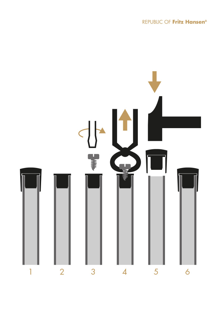 | Funktion & Eigenschaften | Gleiter passend für die Arne Jacobsen Stühle: Serie 7, Die Ameise und Grand Prix |