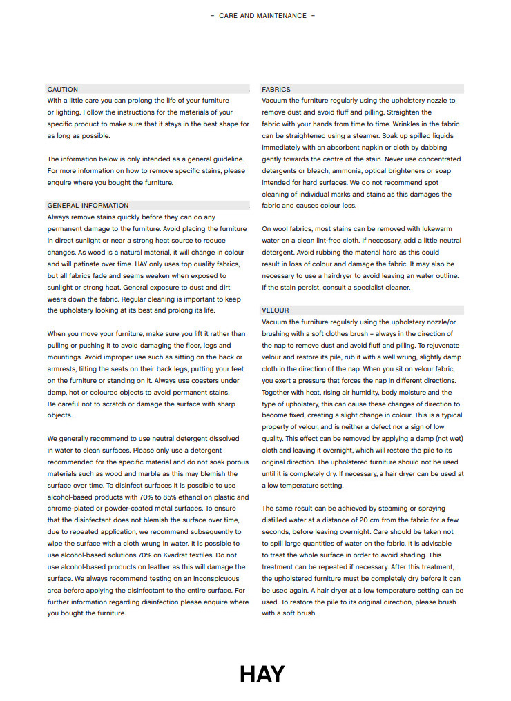 | Gewährleistung | 24 Monate Darüber hinaus gewährt der Hersteller HAY eine Garantie von 10 Jahren. |