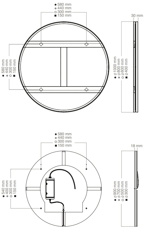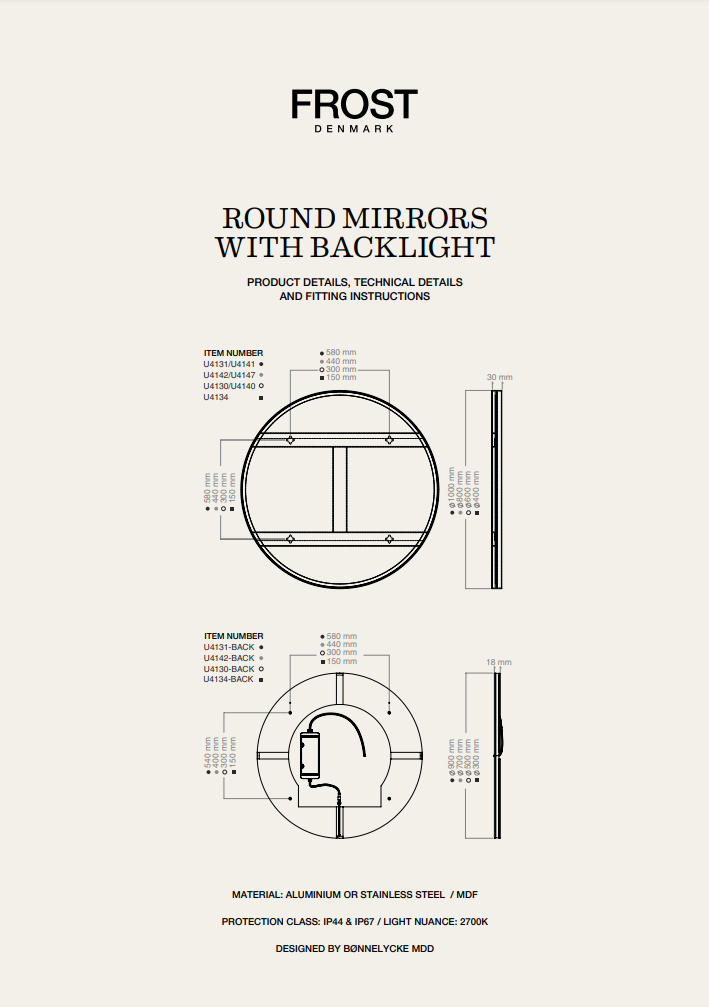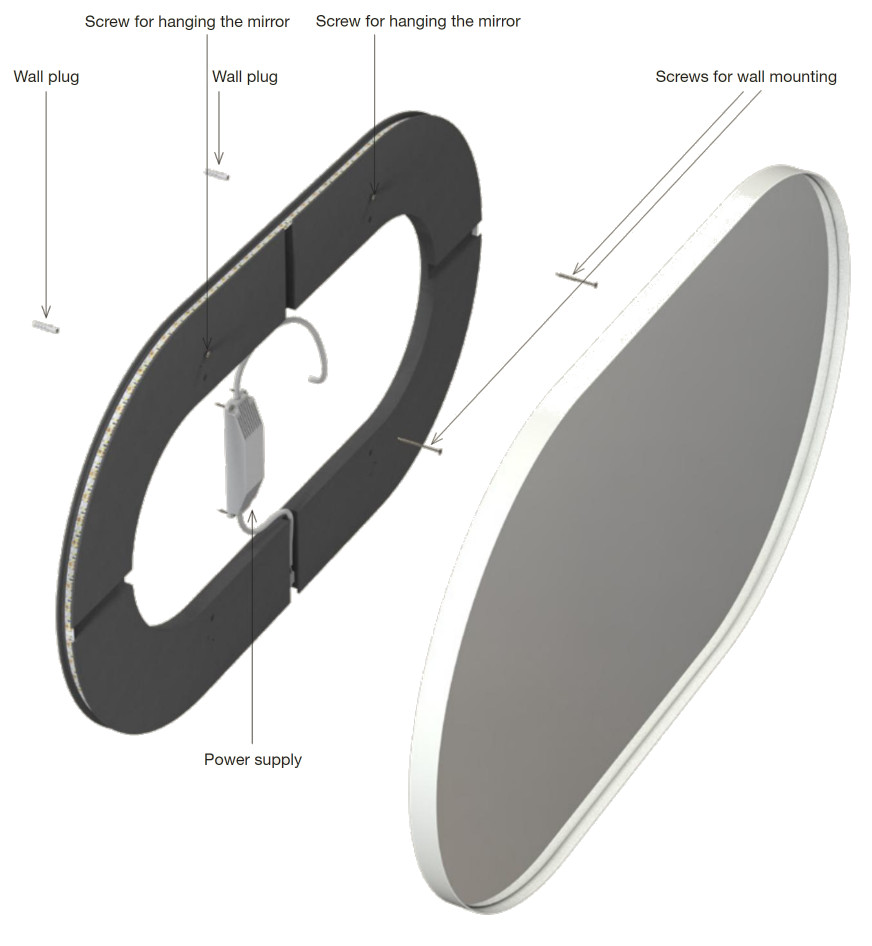 | Zubehör | Alle runden und ovalen Unu Spiegel können mit der LED-Platte ausgestattet werden. |