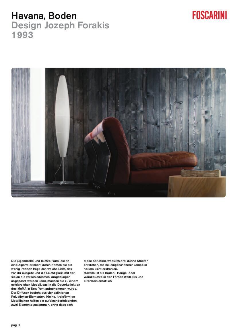 Die Havana Leuchte von Foscarini wurde zwar erst 1993 von Jozeph Forakis designt, gehört heute aber schon zu den Klassikern des Sortiments des italienischen Herstellers, der sich auf außergewöhnliche Qualitätsleuchten spezialisiert hat. Die Stehleuchte Havana überzeugt vor allem durch ihre beeindruckende Größe und den organisch geformten Lampenschirm, dessen schleierhafte Transparenz ein diffuses Licht zaubert und die Foscarini Leuchte so für gemütliche Wohnbereiche prädestiniert, in denen sie eine traumhafte Atmosphäre schafft. Zu Recht verdient die Leuchte Havanna deshalb ihren Platz in der dauerhaften Designkollektion des New Yorker Museum of Modern Art.