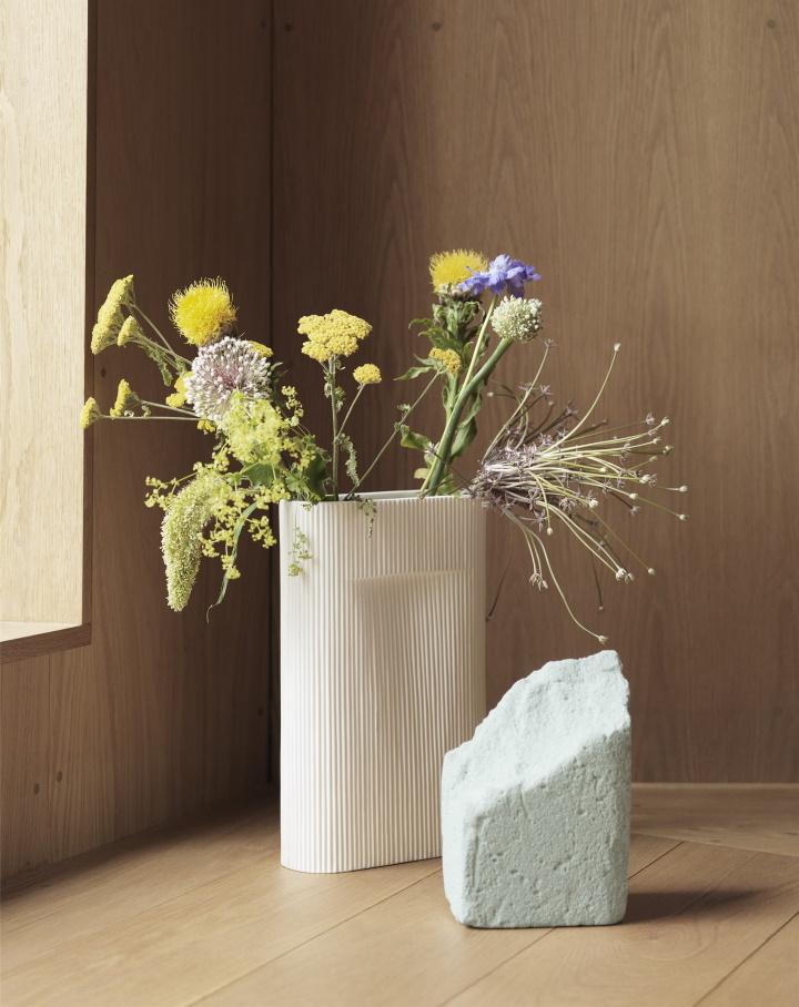 Hinter dem in Helsinki ansässigen Designduo Studio Kaksikko verbergen sich Salla Luhtasela und Wesley Walters, zwei ehemalige Studierende der Aalto University School of Arts, Design and Architecture, die sich auf die Herstellung von Keramikgeschirr und Holzmöbeln spezialisiert haben. Im Mittelpunkt ihrer Designs steht das Interesse an funktionalen, zurückhaltenden Formen und der haptischen Qualität der sorgfältig ausgewählten Materialien sowie am Herstellungsprozess selbst. Studio Kaksikko stellen ihre Entwürfe, zu denen auch die Muuto Vase Ridge gehört, mit viel Liebe zum Detail in kleinen Serien von Hand her. Als besonders relevant empfindet das Designduo laut eigener Aussage den rationalen, funktionalistischen Ansatz des skandinavischen Designs des 20. Jahrhunderts.
