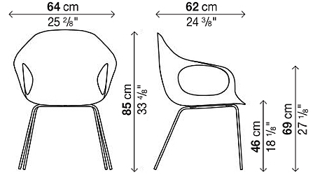 | Ausführungen | Gestell wahlweise verchromt, gebürstet oder in Farbe der Sitzschale lackiert |