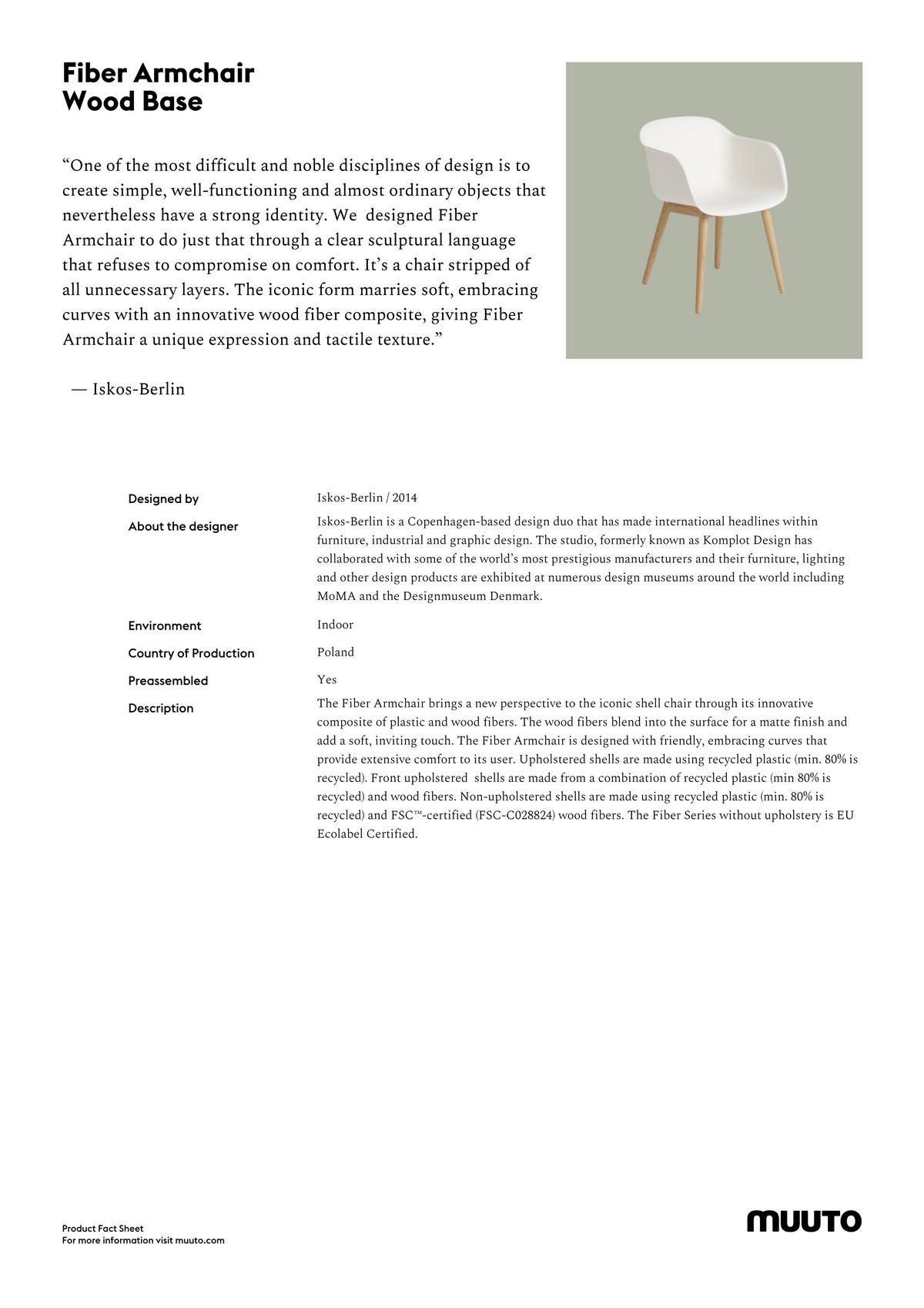 Der Fiber Armlehnenstuhl von Muuto besteht aus einem klassischen Holzuntergestell und einer Sitzschale aus einem besonderen Mix aus Kunststoff und Holzfasern, der dem Stuhl einen besonderen Charakter verleiht. In verschiedenen Farbausführungen eignet sich der Muuto Stuhl von Iskos-Berlin optimal für das Esszimmer oder den Wohnbereich.