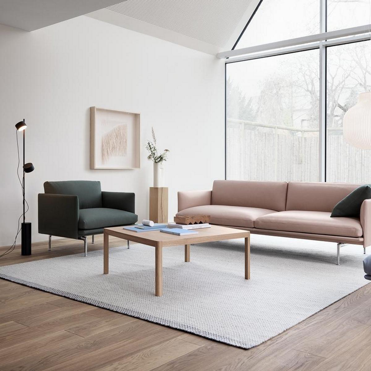 Tipp: Die ideale Größe eines Design-Teppichs ergibt sich aus der Subtraktion von circa 60 Zentimetern vom kürzesten Wandmaß im Raum. Direkt vor dem Sofa platziert, sollte ein Teppich immer je 30 Zentimeter an den Seiten herausragen.
