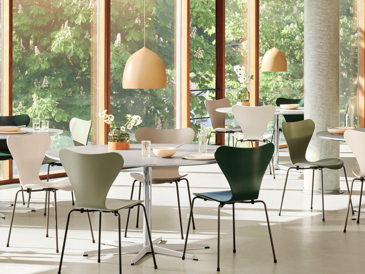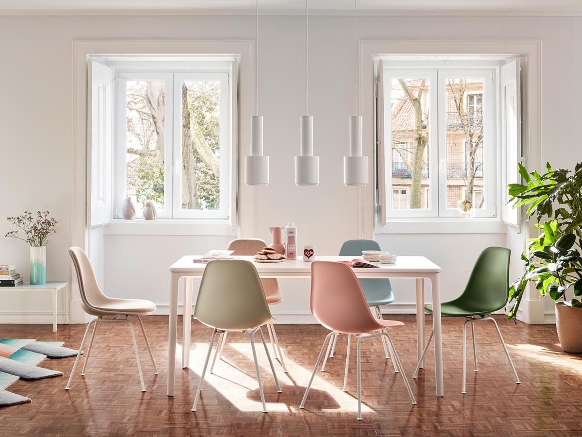Mintgrün, Vanille oder Flieder, Pastellfarben assoziieren wir gerne mit dem Amerika der 1950er Jahre – mit der Unbeschwertheit von Eiscreme, Cadillacs und Petticoats. Ganz technisch betrachtet handelt es sich bei Pastellfarben um Farben mit hohem Weißanteil, der die jeweilige Farbe in einen hellen zarten bis blassen Ton verwandelt. So wird die Farbintensität gemildert und Farben wie Rot, Grün oder Blau verwandeln sich in Pastelltöne wie Altrosa, Mintgrün und Hellblau. In der Kunstgeschichte steht die sogenannte Pastellmalerei für eine Technik, bei der mit pigmentierten Kreiden auf Papier gezeichnet wird. Hier scheint das Weiß des Papieruntergrunds durch die zarten Farbschichten und verleiht den Farben so eine luftige und helle Wirkung. All diese positiven Eigenschaften kommen natürlich auch bei der Inneneinrichtung mit Pastellfarben zu voller Entfaltung. Entgegen ihrem kindlichen und lieblichen Ruf wirken Pastelltöne hier richtig eingesetzt minimalistisch, edel und klar. Stimmungsaufhellende Akzente mit Möbeln und Accessoires in Pastelltönen liegen voll im Trend und kommen am besten in Verbindung mit reinem Weiß oder gedeckten Grautönen zur Geltung. Besonders beliebt ist die Verbindung von Holztönen und Pastellfarben, auf die skandinavische Labels gerne zurückgreifen. Aufgrund der angenehmen und erfrischenden Wirkung erstrahlen zeitgenössische Möbeldesigns, Leuchten und Accessoires immer häufiger in edlen Pastellfarben, doch auch Möbelhersteller wie Fritz Hansen oder Louis Poulsen lancieren immer wieder Reeditionen berühmter Designklassiker in neuen, trendigen Pastelltönen.