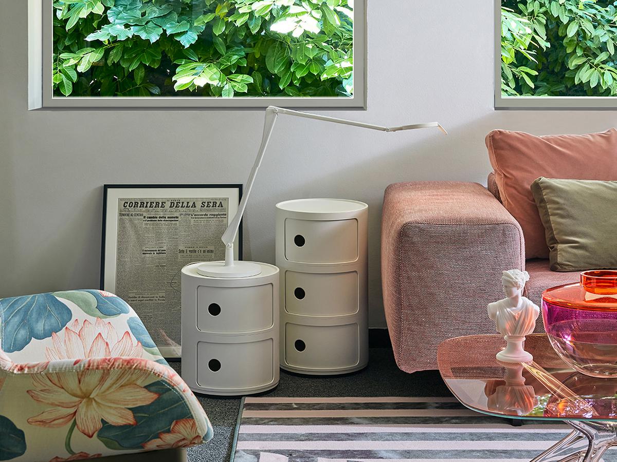 Der runde Beistellcontainer Componibili, dem immer wieder sein kultiger Ruf vorauseilt und der für viele Kinder in ihren Kinderzimmern wohl schon den Beginn einer gewissen Möbeldesignaffinität darstellen dürfte, stammt aus der Feder der Italienerin Anna Castelli-Ferreri. Wussten Sie, dass auch sie es war, die den italienischen Hersteller Kartell gründete? 1949 etablierte Anna gemeinsam mit ihrem Mann Guido Castelli den Möbelhersteller Kartell. Guido war Chemiker, Anna Architektin - eine Win-Win-Situation also. Gemeinsam machten sie Kartell zum weltweit führenden Hersteller in Design und Herstellung von Kunststoffmobiliar. Ab den Sechzigerjahren wurde Anna selbst als Möbeldesignerin tätig und fand Freude am Experimentieren mit dem Material Kunststoff. Weltweit bekannt wurde sie mit dem Beistellcontainer-Baukastensystem „Componibili".