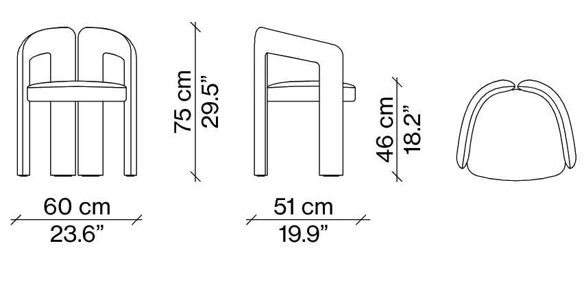 Der Dudet Stuhl von Cassina ist eine Hommage an das extravagante Design der 70er-Jahre. Der bequeme, gut gepolsterte Stuhl zeichnet sich durch seine weiche Form aus, bei der die Linien, die Armlehnen und Stuhlbeine umreißen, eine einzige, symmetrische Einheit ergeben.