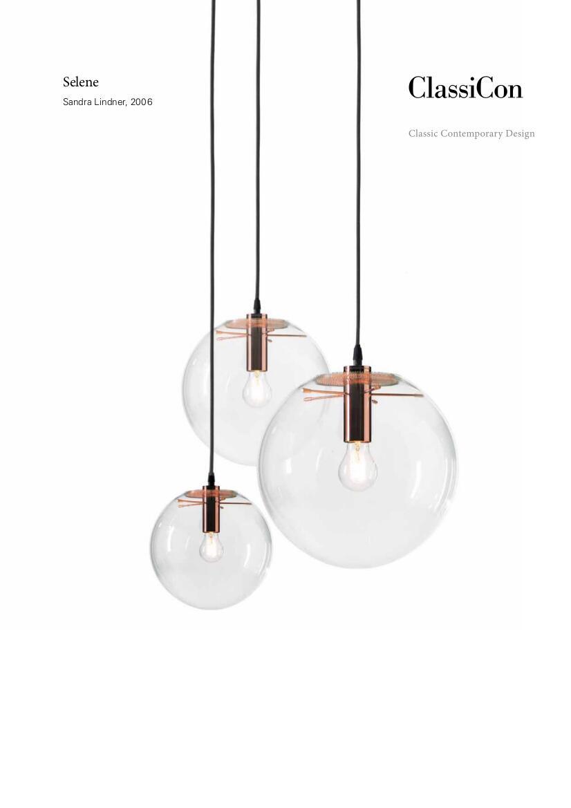 „Was wirklich Qualität hat, entscheidet die Zeit“, heißt es in der Philosophie des Münchner Designherstellers ClassiCon. Dabei sollen nicht nur bewährte Designklassiker, wie der Adjustable Table von Eileen Gray, sondern vor allem auch neue Produkte, die das Potential haben, in die Designgeschichte einzugehen, den Erfolg ClassiCons tragen. So setzt das Label auch auf die Förderung zeitgenössischen Designs und junger, spannender Talente, deren Arbeiten Individualität, Qualität und zeitlose Ästhetik in sich vereinen. Diesem Anspruch kommen auch die Designs von Sandra Lindner nach, die die Selene Pendant Lamp 2006 für ClassiCon entworfen hat. Aus mundgeblasenem Glas hergestellt, trifft auf die Leuchte ein essentieller Grundgedanke zu, der sich durch das gesamte Werk Lindners zieht: die Fertigung aus einem Stück. Nach drei handwerklichen Ausbildungen ist es fast logisch, dass der Herstellungsprozess eine entscheidende Rolle in der Charakterbildung ihrer Objekte spielt. In dem Sinne ist jede der ClassiCon Selene Lampen ein Unikat, das mit seiner verträumten Transparenz leuchtende Akzente setzt.