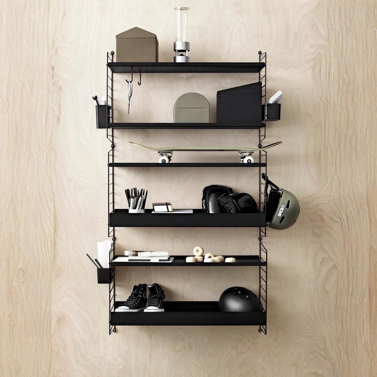Das vielseitige String Regalsystem, hier mit Metallböden, sorgt für Ordnung im Teenagerzimmer