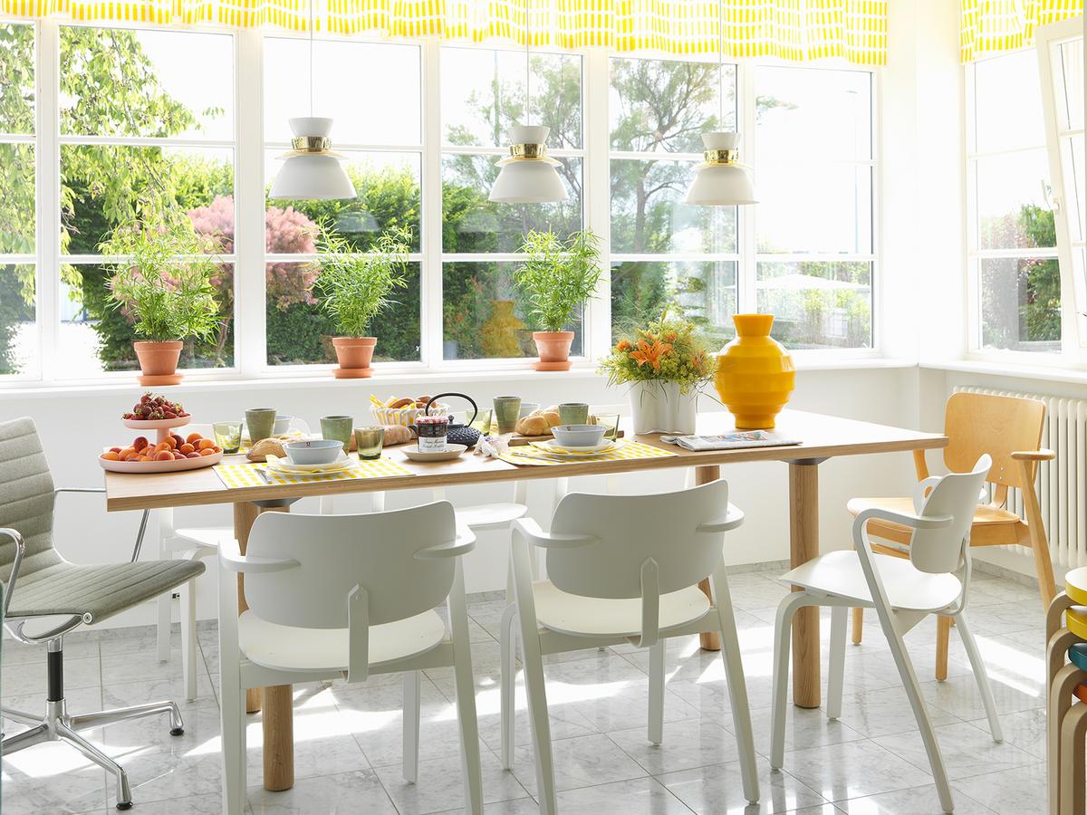 Ein Muttertagsfrühstück mit Stil und gutem Design: Die Vitra Rotary Tray Étagère und der Artek AMA Pendelleuchte