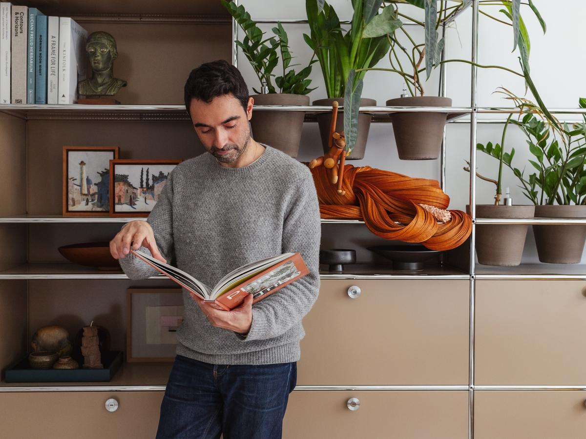 Igors besondere Verbindung zur Kunst wird offensichtlich, wenn man sein Zuhause betrachtet. Spätestens aber, wenn er die Hintergründe spezieller Kunstwerke erläutert, wird deutlich, warum der studierte Wirtschaftswissenschaftler nochmals die Studienbank in Kunstgeschichte drückt. Seine Einrichtung ist eine gekonnte Mischung aus Designklassikern, USM-Stauraumlösungen, skandinavischen Liebhaberstücken und Souvenirs von Reisen, alles in einer dezent neutralen Farbpalette von Braun und Beige gehalten, umgeben von seinem ganz persönlichen Urban Jungle natürlich.