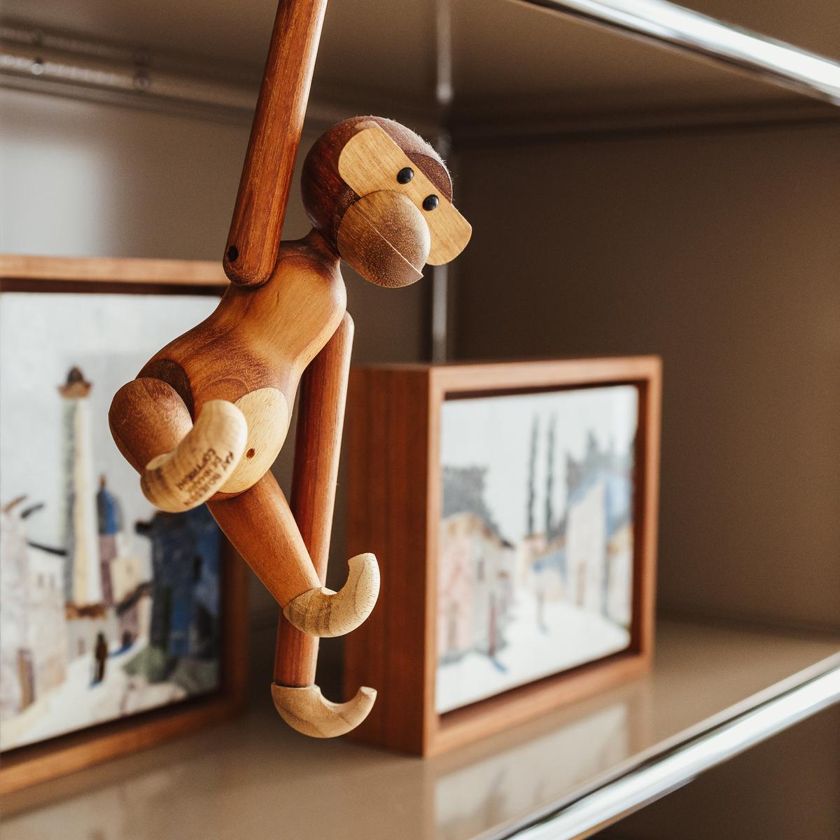 #smowathome bei Igor in einem Bild: Pflanzen, Kunst, Keramik, Reisesouvenirs und das Skandi-Äffchen in beigem Rahmen