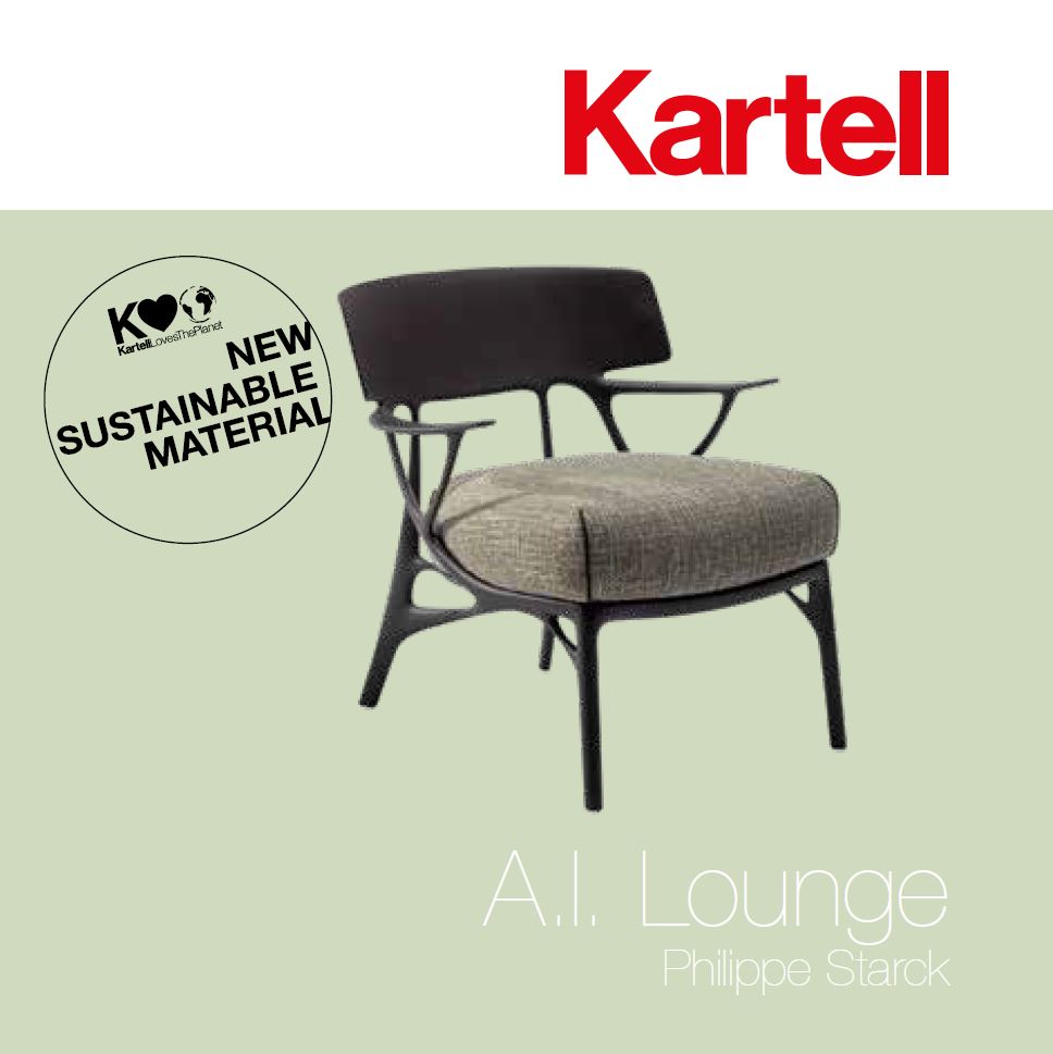 Mit der A.I. Serie von Kartell entwickelte Philippe Starck die weltweit ersten Designobjekte mithilfe künstlicher Intelligenz. Alle Objekte der Produktfamilie wurden von einer Software errechnet und erhielt von Philippe Starck und seinem Designerteam lediglich den Feinschliff. Der A.I. Lounge Sessel ist das jüngste Mitglied der A.I. Familie und besticht neben der großen Stoff- und Farbauswahl durch seine charakteristische Form, ohne dabei auf Komfort zu verzichten.