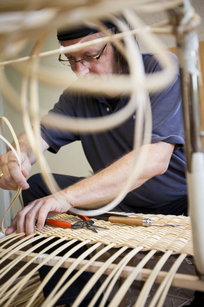Thonets berühmtes Wiener Geflecht in der Herstellung