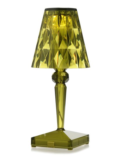 Die innovative Tischleuchte Battery von Kartell kann bis zu sechs Stunden ohne Stromanschluss verwendet werden und ist somit ein perfekter Begleiter für den Abend auf der Terrasse. Designer Ferruccio Laviani arbeitete speziell die facettierte Oberfläche des Schirms heraus, durch die wunderbare Lichtspiele erzeugt werden. Mit Metallic-Gestell wirkt die mobile Leuchte besonders edel.