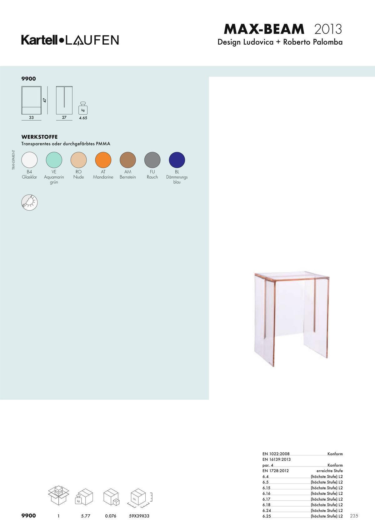 Max Beam, designt von Ludovica und Roberto Palomba für Kartell, wird aus einem Stück gefertigt und kann sowohl als Beistelltisch als auch Hocker fungieren. Die Multifunktionalität schafft ein praktisches Möbel für einen vielseitigen Einsatz in jedem Raum.