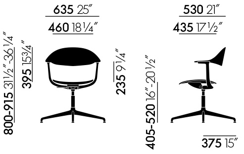 Rücken- und Armlehnen: 100% Post-Industrial-Recyclingpolyamid (zu 100% recycelbar) oder Furnierholz Eiche natur