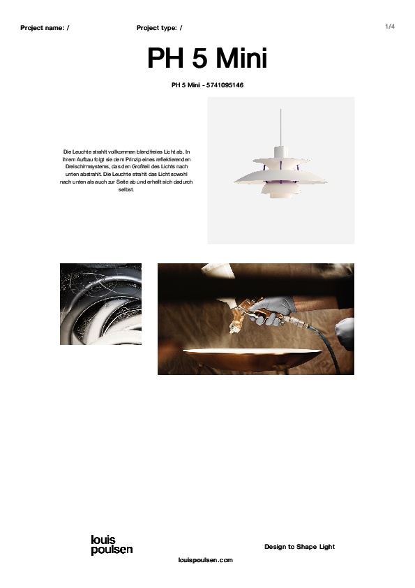 | Ausführungen | Auch als PH 5 Monochrom, PH 5 Mini, PH 5 und PH 5 Classic erhältlich |