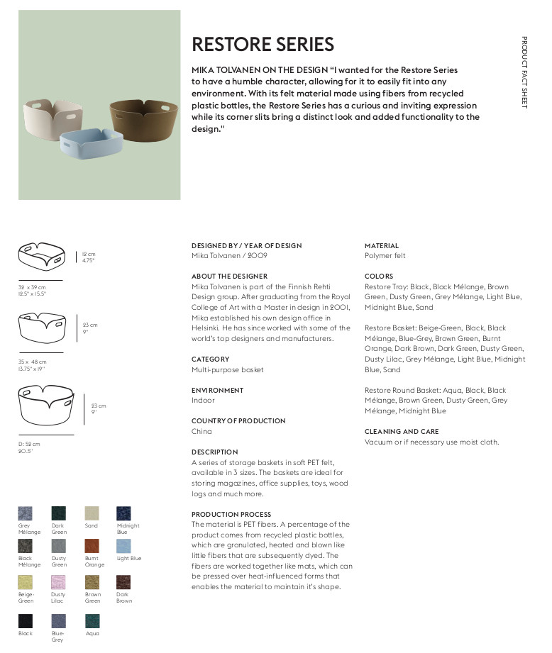 | Ausführungen | Alternativ sind der Restore Storage Basket rund und das Restore Tray erhältlich |