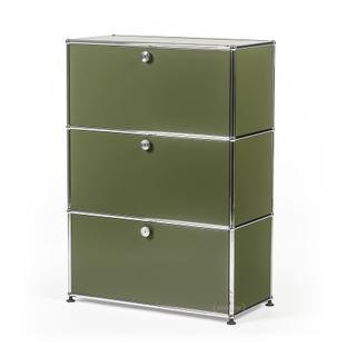 USM Haller Highboard M, individualisierbar Olivgrün RAL 6003|Mit Klappe|Mit Klappe|Mit Klappe