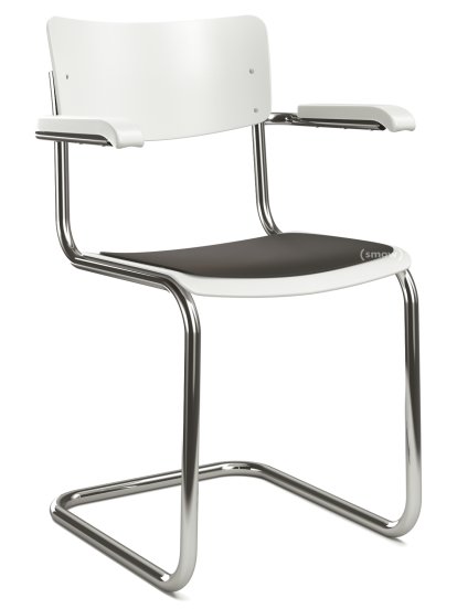 S 43 F Klassik Freischwinger, Gestell verchromt, Buche decklackiert, Reinweiß (RAL 9010), Sitzauflage schwarz, ungepolstert, Ohne Gleiter