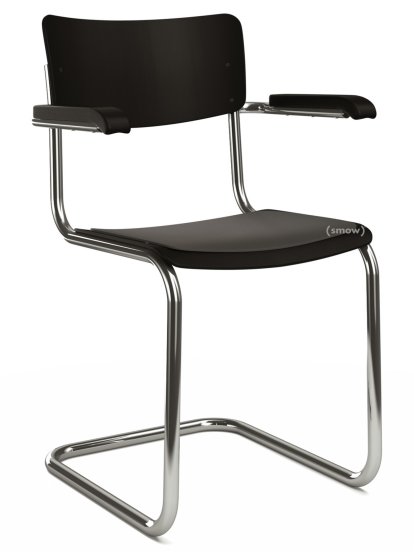 S 43 F Klassik Freischwinger, Gestell verchromt, Buche gebeizt, Nussbaumfarbig (TP 24), Sitzauflage schwarz, gepolstert, Ohne Gleiter