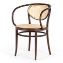 | Material | Gestell: Buche, gebeizt oder lasiert Sitz: Rohrgeflecht mit Kunststoffstützgewebe oder Formsperrholz Gleiter: Kunststoff, schwarz |