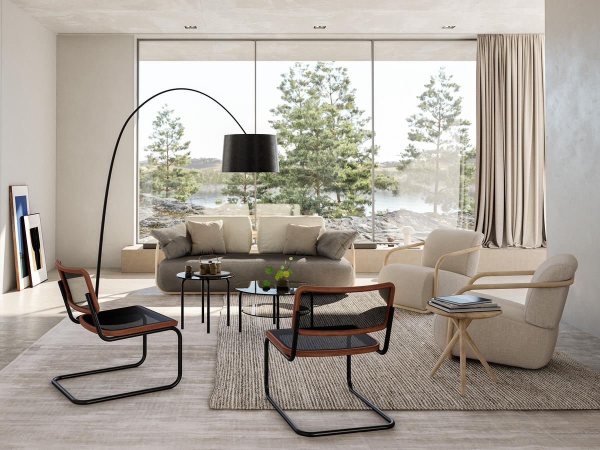 Das Konzept Lounge and Living vereint Thonet Designklassiker, die für ein stilvolles, gemütliches und vor allem komfortables Ambiente sorgen und dabei auf Funktionalität, Minimalismus und charakteristische Materialien setzen. Das Traditionsunternehmen erlangte besonders durch seine innovativen Bugholzstühle des 19. Jahrhunderts und die modernen Stahlrohrfreischwinger der Bauhausära zu Beginn des 20. Jahrhunderts Berühmtheit. Bis heute gehört der Möbelhersteller Thonet zu den international führenden Produzenten von Designmöbeln höchster Qualität. Ob in der Hotellobby oder zu Hause, Thonet Möbel schaffen perfekte Räume, in denen Menschen zusammenkommen, um sich auszutauschen, zu arbeiten oder gemeinsam zu essen. Zu diesem Zweck versammelt Thonet Lounge and Living eine Auswahl klassischer und zeitgenössischer Sitzmöbel, Tisch- und Leuchtenddesigns. Klassiker der modernen Designgeschichte wie Marcel Breuers minimalistische Bauhausmöbel treten dabei in Dialog mit Reeditionen und zeitgenössischen Entwürfen, die das Erbe der Moderne aufgreifen und weitertragen.