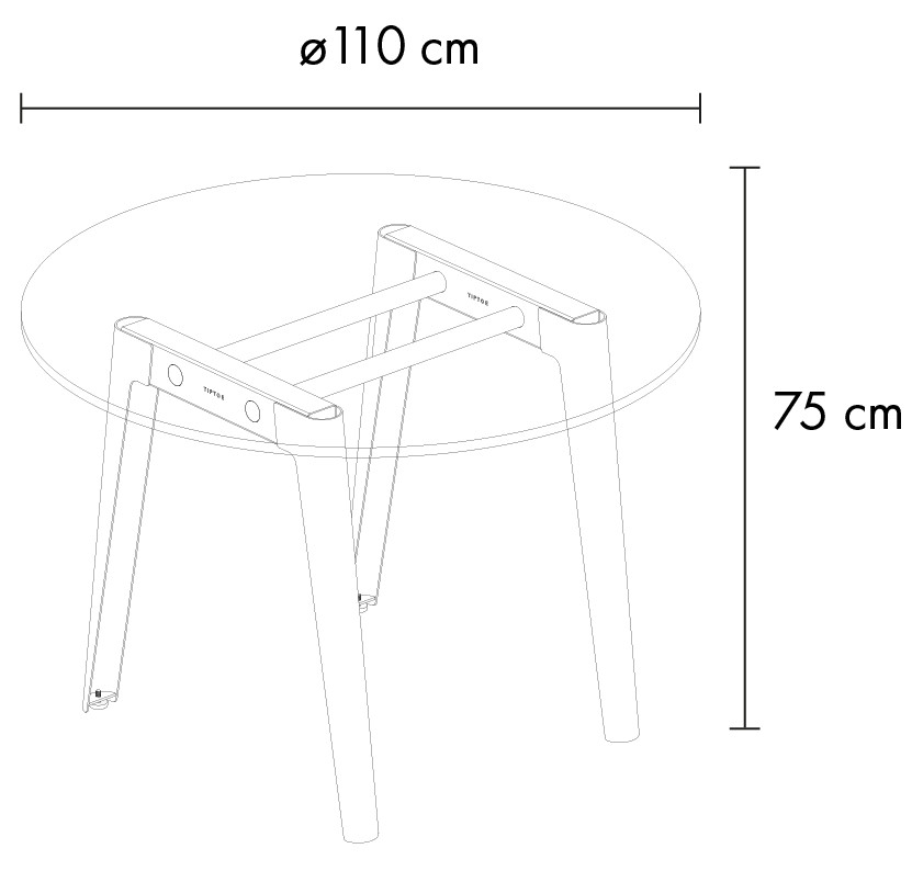 | Ausführungen | Auch mit Tischplatte aus Recycling-Holz oder aus recyceltem Kunststoff erhältlich. Außerdem bietet TIPTOE eine rechteckige Version dieses Tisches an. |