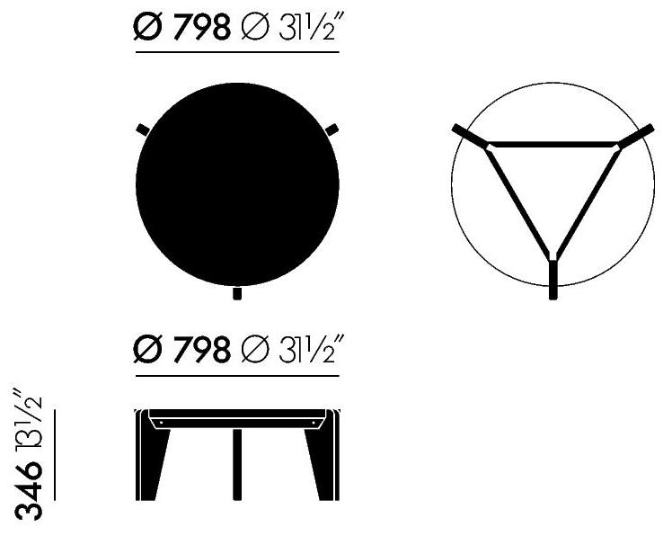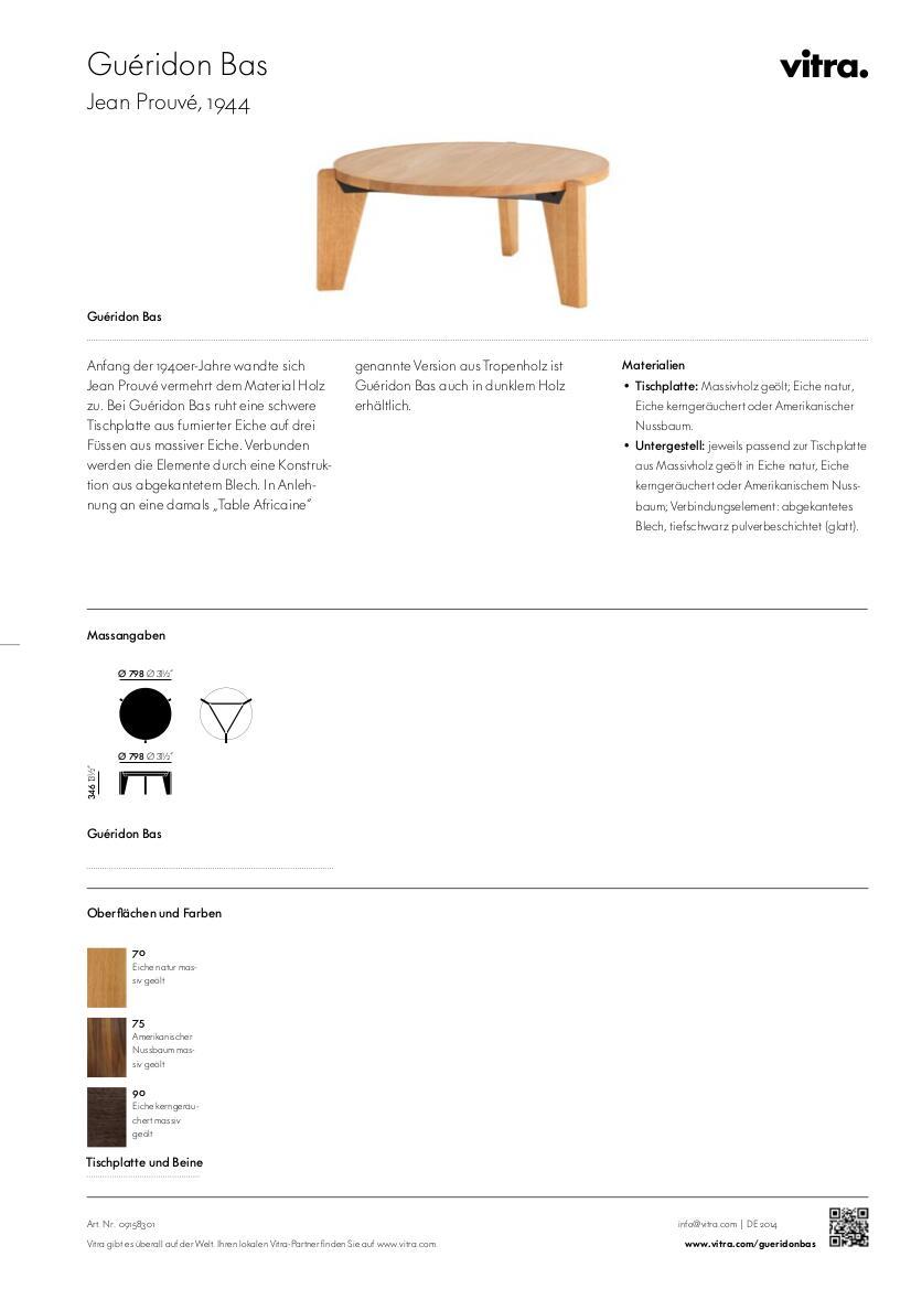 Den Vitra Couchtisch Guéridon Bas designte Jean Prouvé in den 40er Jahren, als er begann sich vermehrt mit dem Material Holz zu beschäftigen. Die drei Tischbeine des Vitra Beistelltischs werden nach oben hin breiter und ragen an den Seiten der runden Tischplatte hervor, was dem Guéridon Bas Tisch einen markanten, eingängigen Look verleiht. Gefertigt aus massivem amerikanischem Nussbaum oder aus massiver Eiche, versprüht der Prouvé Couchtisch einen rustikalen wie raffinierten Charme.