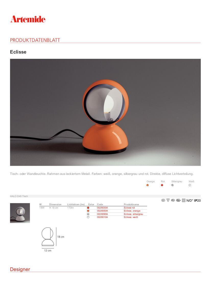 | Ausführungen | Auch als Eclisse Special Edition in glänzendem Metall erhältlich |