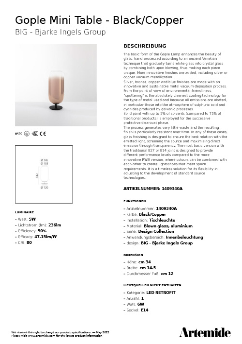 Die Artemide Tischleuchte Gople Mini der BIG Bjarke Ingels Group ist die kleinere Variante der Gople Tischleuchte. Mundgeblasenes und veredeltes Glas gibt jeder Leuchte eine einzigartige Erscheinung. Mit ihrer geringen Größe lässt sich die kleine Lampe vielseitig als dekorative Lichtquelle im Raum platzieren.