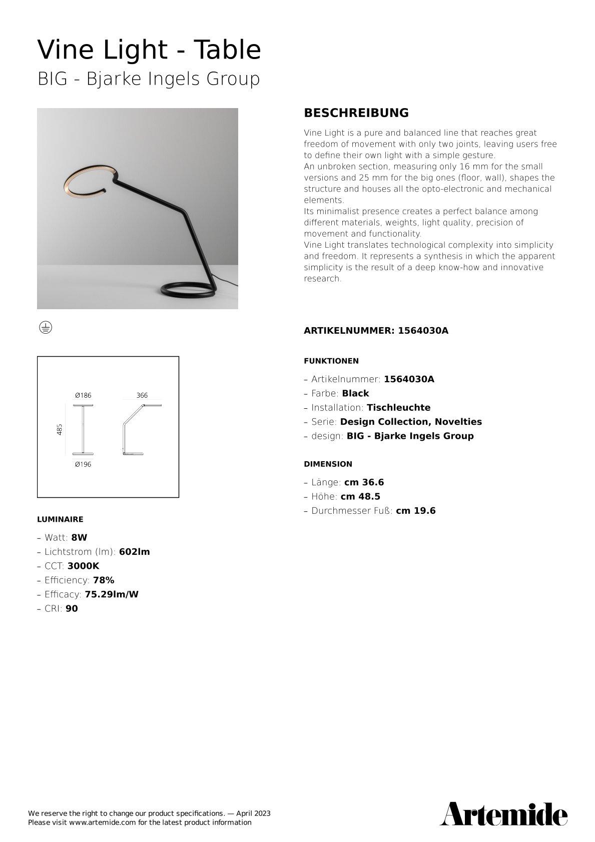 | Gewährleistung | 5 Jahre Garantie auf Material- oder Herstellungsmängel Registrieren Sie Ihre Artemide Leuchte auf cloud.artemide.com/5-years-warranty und profitieren Sie von der erweiterten Garantie. Hierfür müssen Sie Ihr Artemide Produkt innerhalb der ersten 6 Wochen ab Kaufdatum registrieren, um den Anspruch auf kostenlose Reparatur oder Ersatz geltend zu machen. Gewöhnlicher Verschleiß und Schäden sind von der Garantie ausgenommen! |