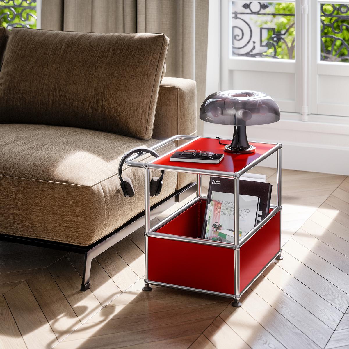 Statement in Rot: Kompakter USM Haller Beistelltisch mit Aufbewahrungsfach