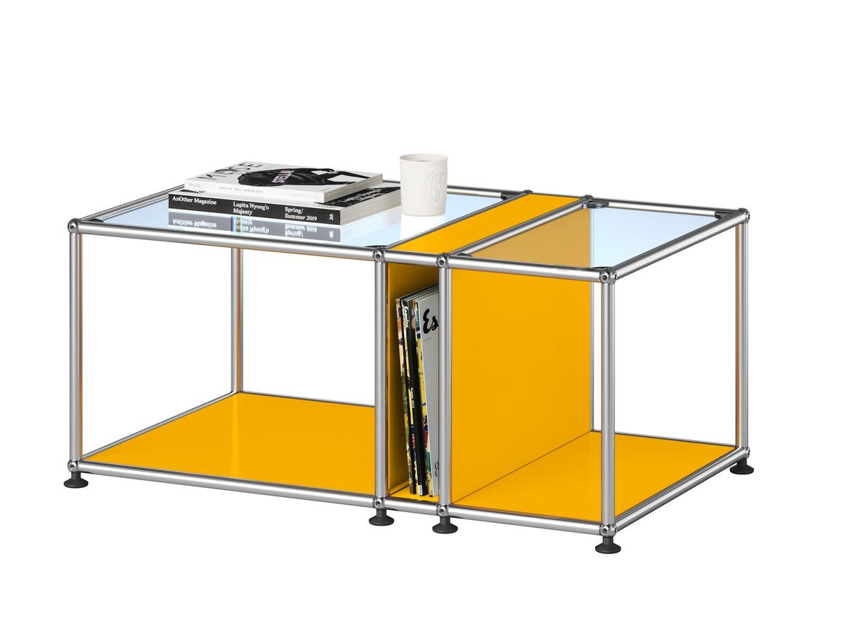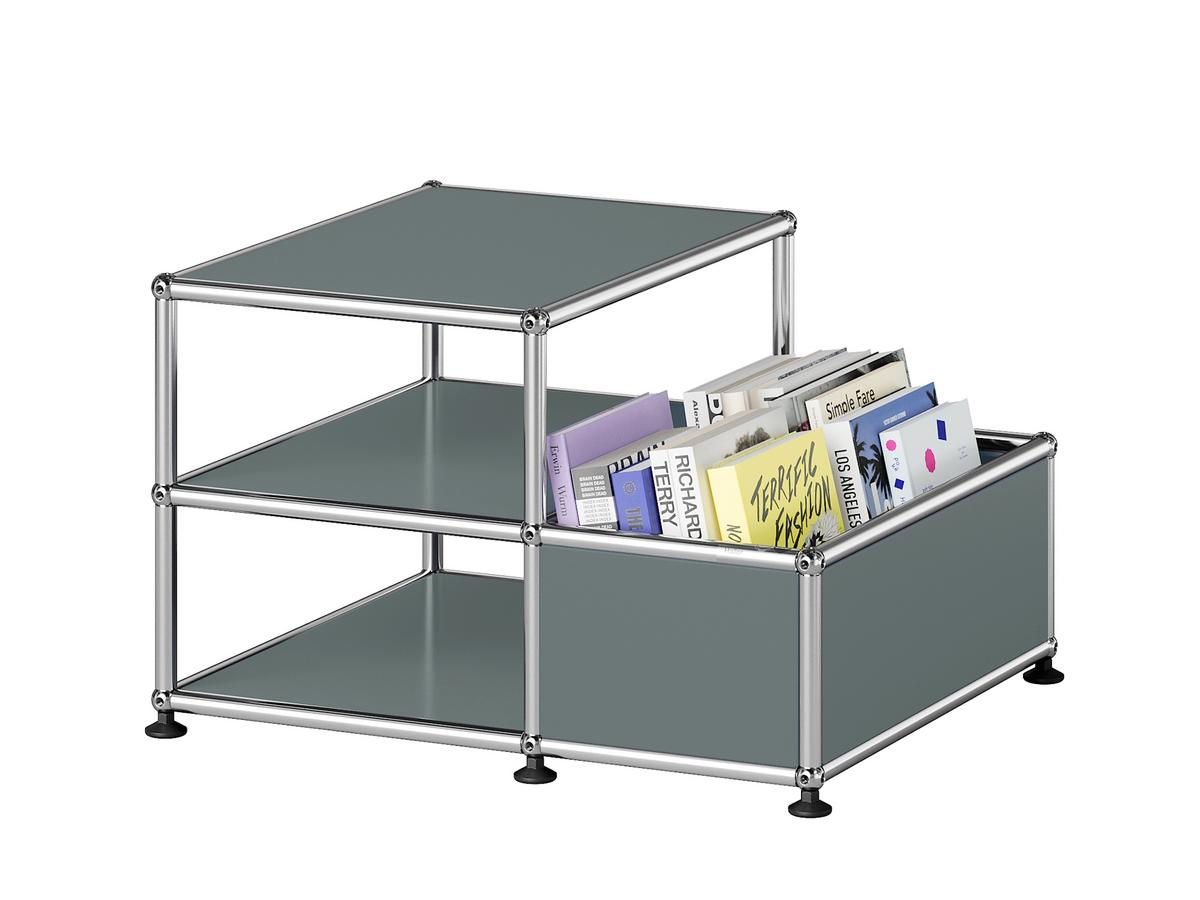 USM Haller Beistelltisch mit Glastablar und Zeitschriftenfach