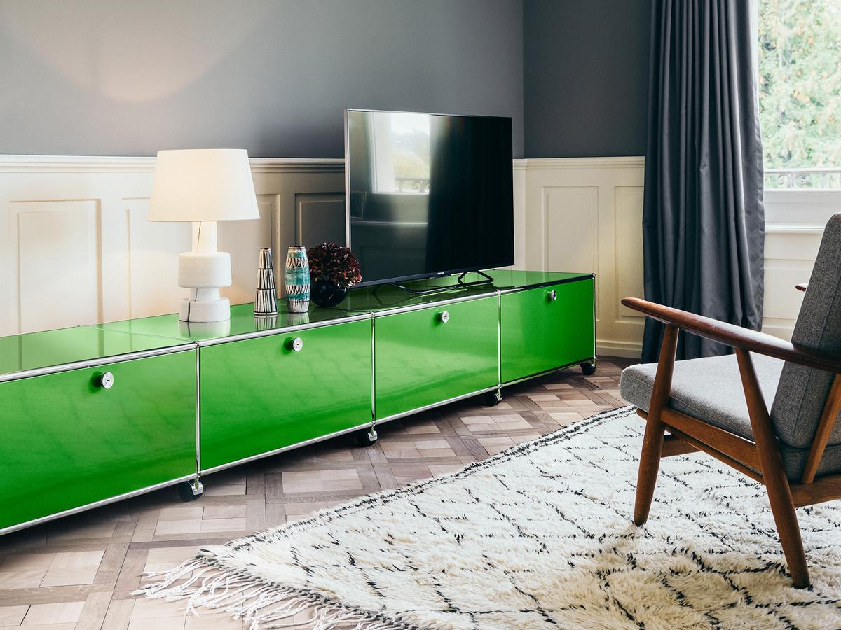 ► Wohnzimmer & Media-Möbel: Als TV- und Medien-Möbel bieten USM Haller Lowboards ausreichend Tiefe für Geräte und Kabelmanagement.