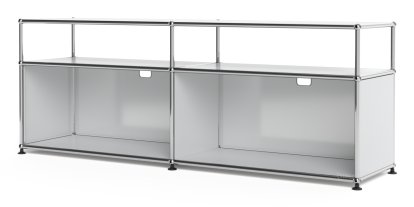 USM Haller Lowboard L mit Aufbau, individualisierbar, Lichtgrau RAL 7035, Offen, Mit Kabeldurchlass oben mittig