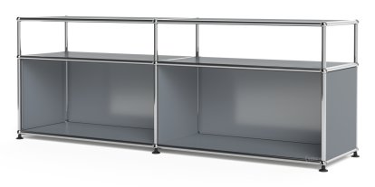 USM Haller Lowboard L mit Aufbau, individualisierbar, Mittelgrau RAL 7005, Offen, Ohne Kabeldurchlass