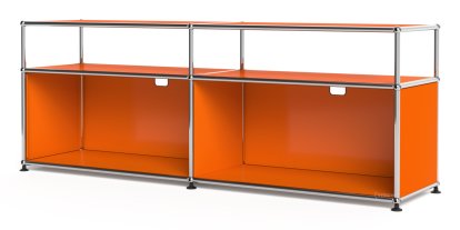 USM Haller Lowboard L mit Aufbau, individualisierbar, Reinorange RAL 2004, Offen, Mit Kabeldurchlass oben mittig