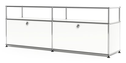 USM Haller Lowboard L mit Aufbau, individualisierbar, Reinweiß RAL 9010, Mit 2 Klappen, Mit Kabeldurchlass oben mittig